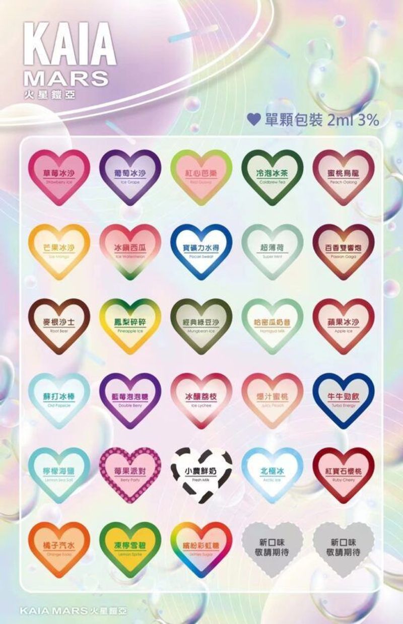 • 水果口味:包括清甜的芒果、酸甜的柑橘等多種水果選擇,帶來清爽的味覺體驗。